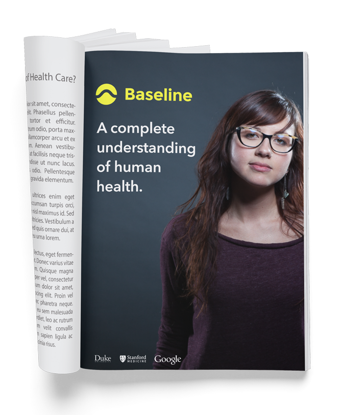 The Baseline Study is a 5-year clinical research collaboration between Duke University, Stanford University, and Verily. The study tracks 10,000 participants to establish the baseline for human health. As a designer on Verily's UX team, I embarked on six-weeks of short design sprints to develop a visual identity for the project. This included the brand mark, colour palette, typographic standards, illustration and photographic style.