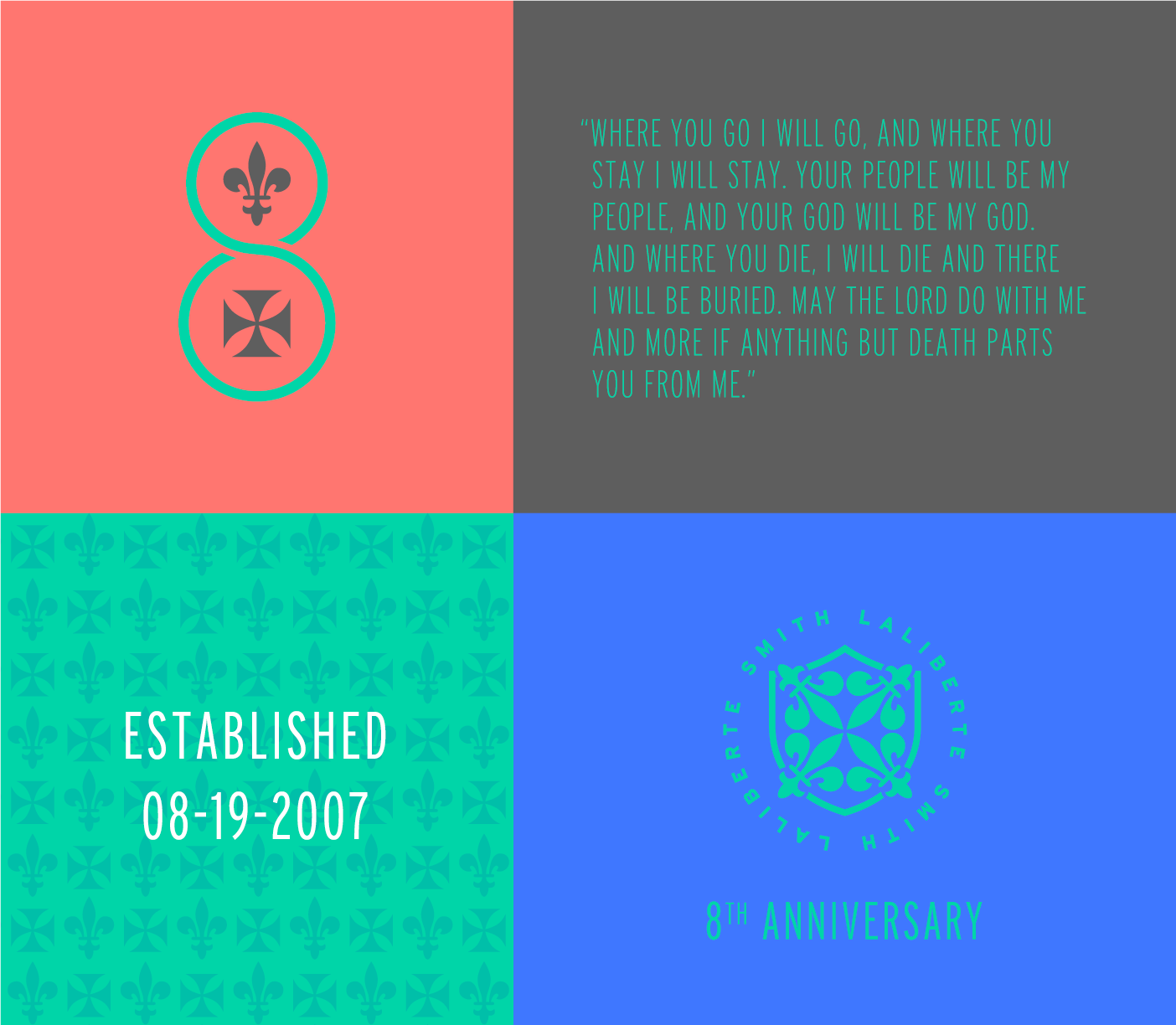 An ongoing personal project to create a visual identity that marries (pun intended) the heritage of two family names, and reinforces the personality and principles of the union.