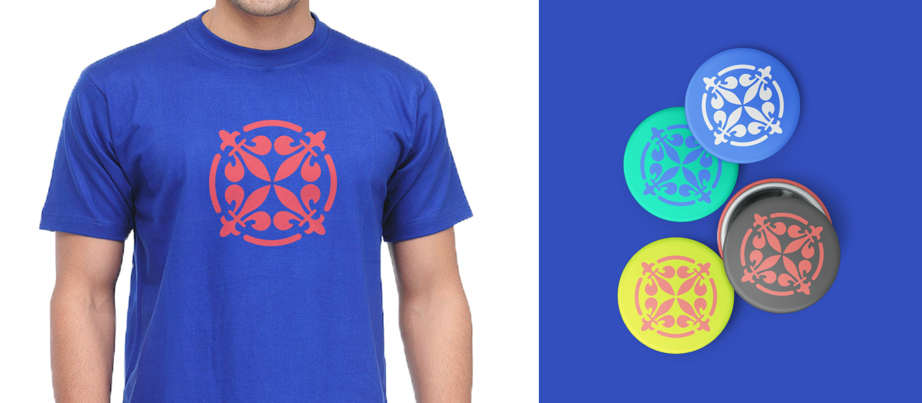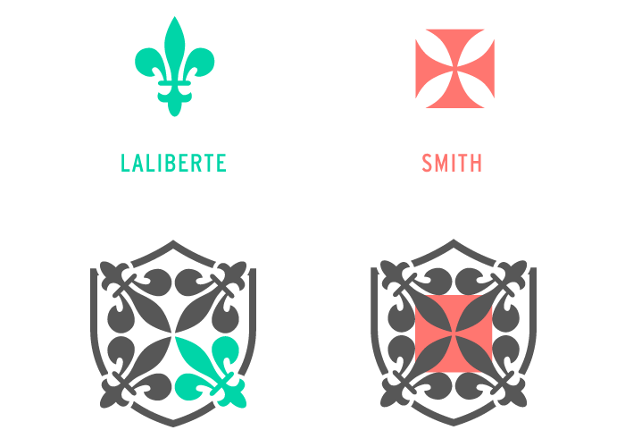 The mark was created by iterating on combinations of the English Cross and Fleur de lis. After a lot of noodling around I discovered that by repeating and rotating the tip of the fluer de lis, a fairly good representation of the cross was formed in the negative space.