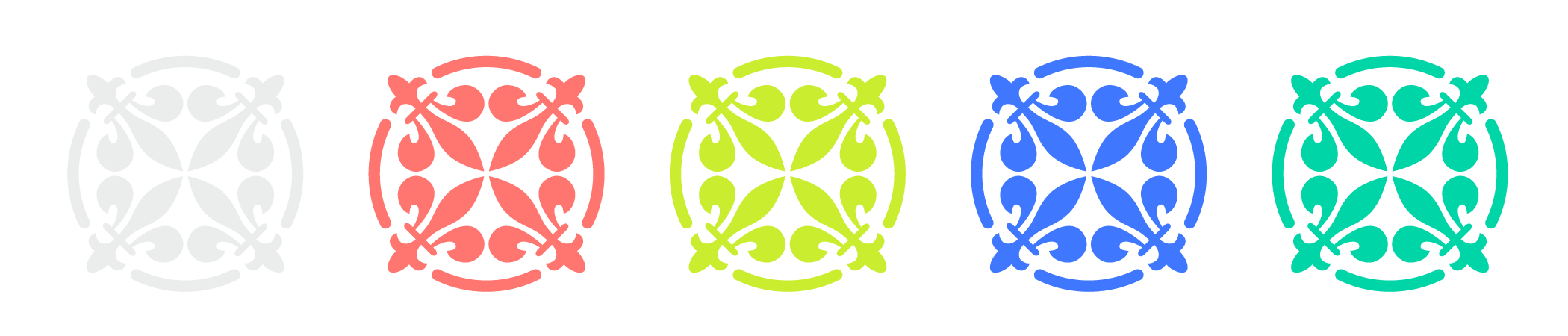 Historically, crest colors tended towards deep reds, blues and blacks with the occasional gold and purple accent; but since my goal was to make a visual system that represents who we are today, I selected vibrant, bold colors and a neutral dark grey.