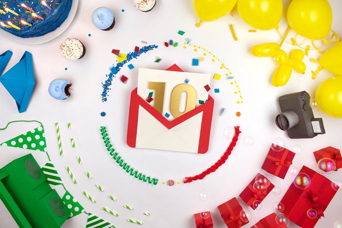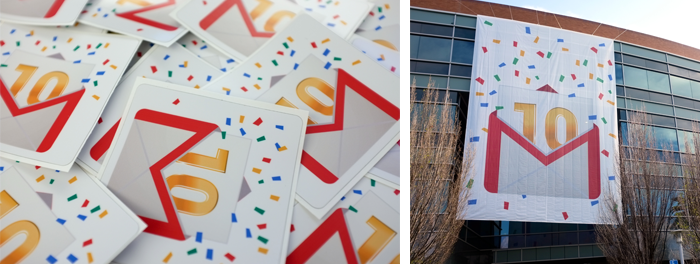 Gmail was first introduced to the world on April 1st 2004. In 2014, with more than 800 million accounts, it is the World’s most used email service. To celebrate Gmail’s 10th birthday, I designed a logo to be used in marketing materials, internal communications, and general swag related to the event at Google.