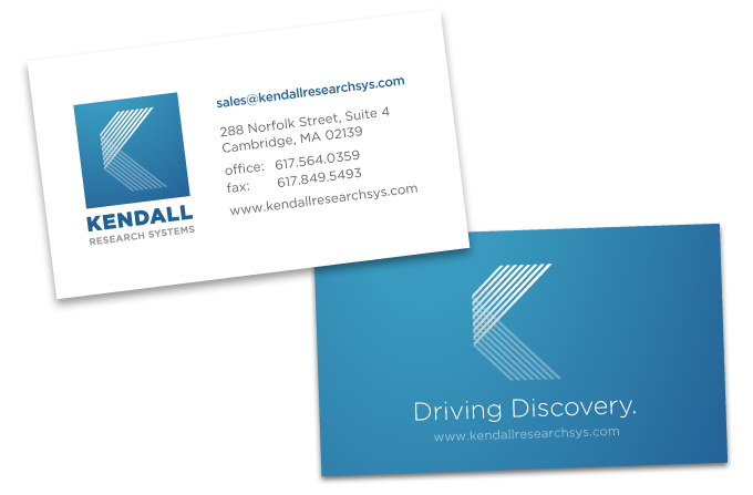 Kendall Research is a small group of engineers and technologists from MIT looking to enable scientific discovery through innovative technology. Initial design work included a logo, business cards and banners for an upcoming trade show event. The K logo mark was inspired by their work in the biomedical space, using fiber-optics to transmit light for activation of neurons.