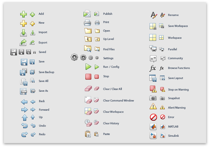 In addition to the toolstrip design, I also reclaimed much needed pixels for the workspace by removing gutters and borders, creating a more effective typographic hierarchy, and generally streamlining the visual content. A comprehensive set of new icons was also created specifically for the new toolstrip design.