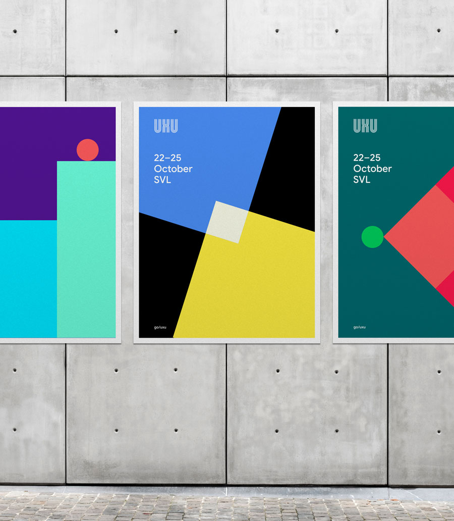 The three main topics for 2018 were learning, connection, and inspiration. I designed three simple, geometric posters to convey each of these themes using Google's Material design colour palette.